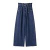 Весенний женский джинсовый комплект 2025 года: рубашка с поясом и плиссированные длинные брюки