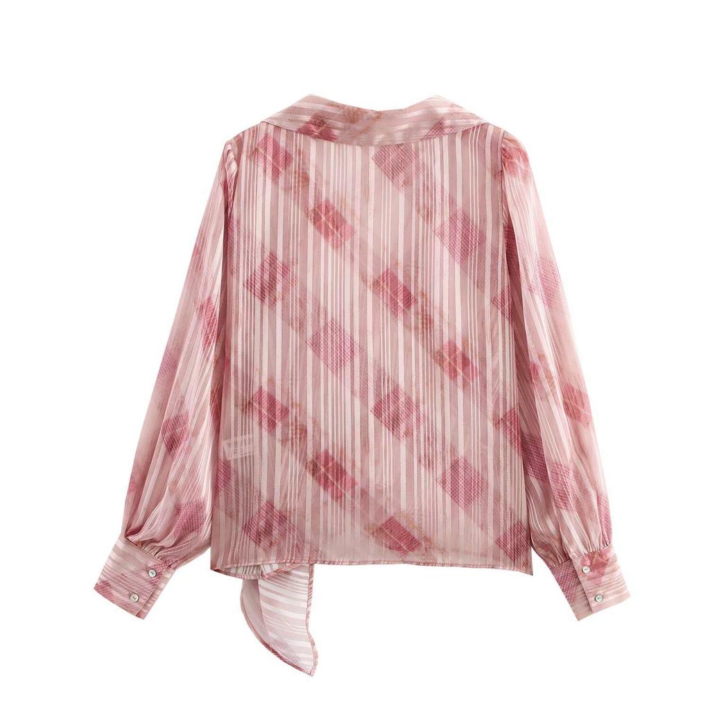 Примите непринужденно шикарный образ с этой модной вещью женской коллекции Весна 2025. Эта рубашка с лацканами и V-образным вырезом имеет изысканный свободный крой, идеально подходящий для любого случая.. Изготовленная из высококачественного полиэстера, рубашка мягкая и приятная на ощупь.. Длинные рукава добавляют элегантности, а деликатная металлическая нить создает легкое мерцание.. Уникальный узел украшает общий дизайн, делая его выдающимся дополнением к вашему гардеробу.