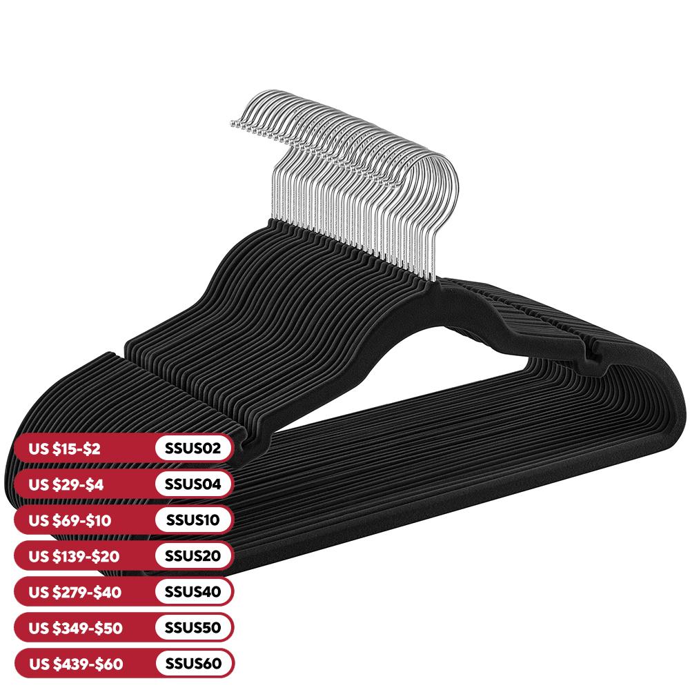 SONGMICSHOME Вельветовые вешалки для одежды 30/50 штук Нескользящие с плечевыми выемками Перекладина для брюк Вращающийся на 360° крючок для хранения костюмов