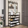 Вешалка-стойка с лавкой для хранения обуви, скамья для прихожей с местом для хранения обуви, для прихожей, серо-бежевый и черный — купить товар онлайн с бесплатной доставкой по всему миру!