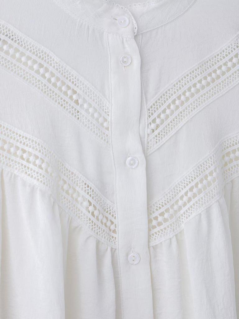 Пополните свой гардероб изысканной и стильной вещью, идеально подходящей для любого случая.. Эта женская рубашка отличается шикарным европейско-американским дизайном, изготовлена из высококачественного полиэстера для удобной посадки. Рубашка демонстрирует воротник-стойку и длинные рукава, добавляя элемент элегантности ее прямому силуэту.. Нежная кружевная отделка и замысловатые детали пэчворка усиливают его очарование, а стеганые украшения придают ему уникальный штрих.. Идеальная для весны, эта неподвластная времени вещь легко сочетает в себе классический дизайн с современным шиком.