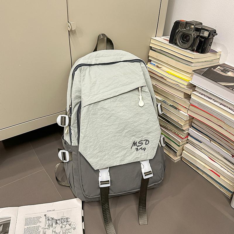 Women Contrast Color Backpack Junior High School Student Schoolbag Large Capacity Outdoor Mountaineering Backpack