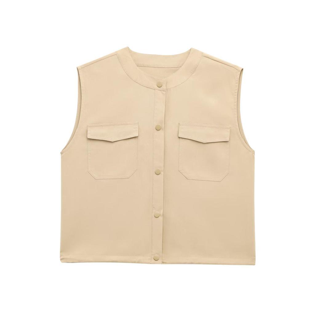 Весна 2025 Женский Европейский и Американский Стиль Модный Универсальный Жилет с Эластичным Подолом