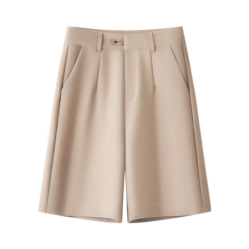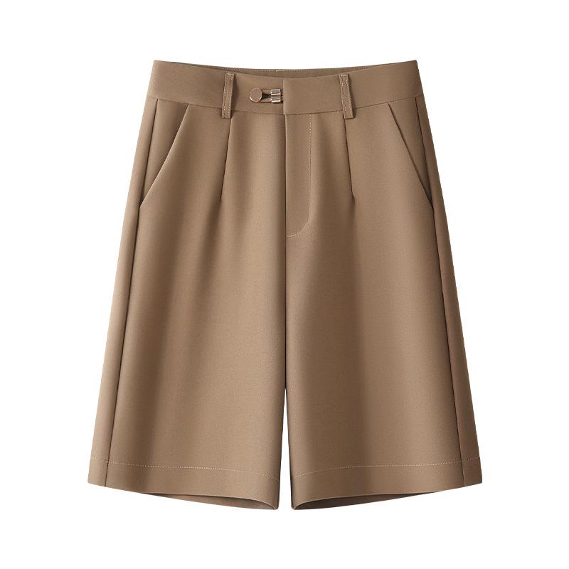 Женские черные шорты от костюма - Весенняя коллекция 2025: Свободные, с высокой талией, широкие брюки-кюлоты.