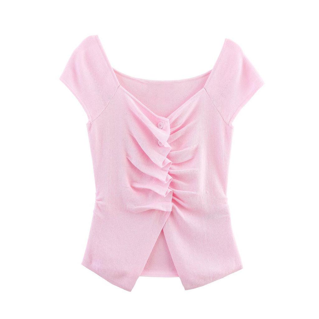 Весна 2025 Женский Европейский и Американский Модный Плиссированный Трикотажный Топ