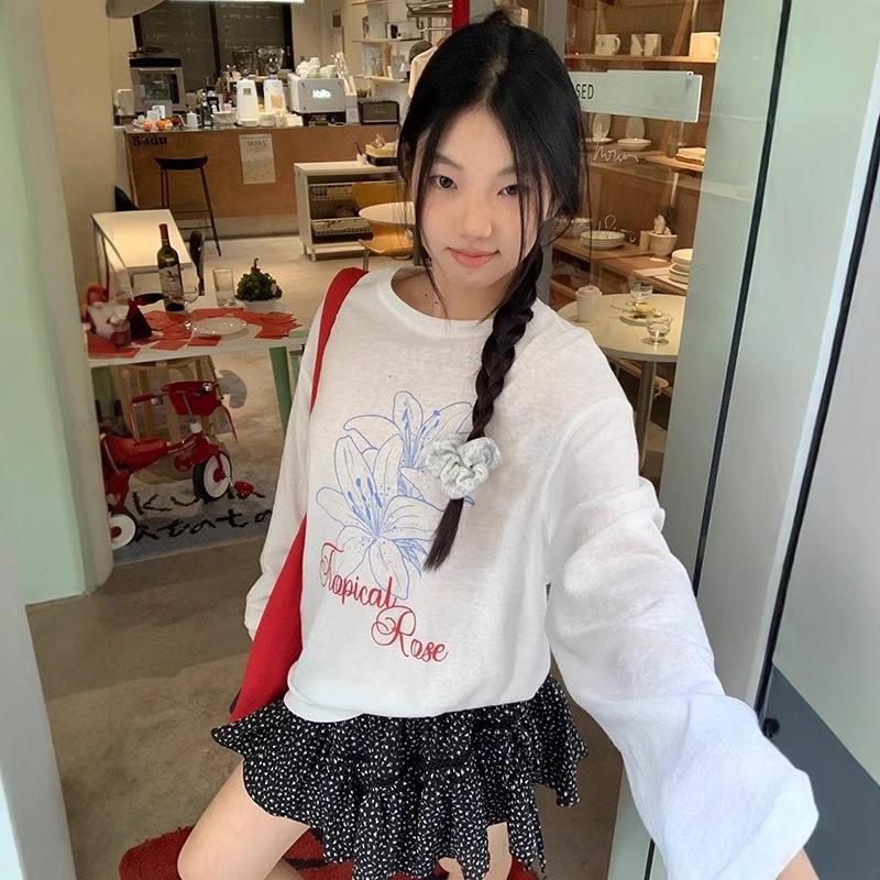 Женская повседневная футболка с длинным рукавом и круглым вырезом с принтом - Приталенная, Защита от солнца, Свободный крой, Белая летняя накидка.