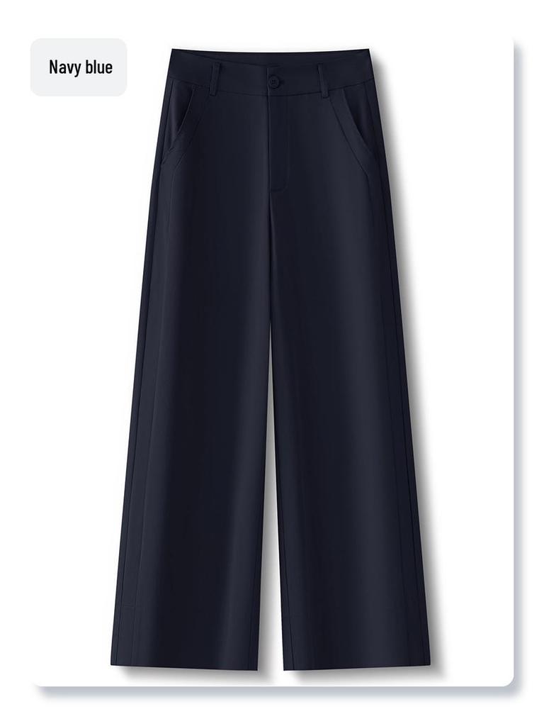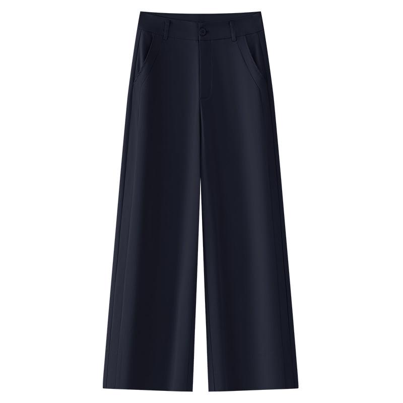 Женские брюки кюлоты темно-синего цвета с высокой посадкой - Коллекция Лето 2025, Легкие, Стройнящие, Свободные, Драпированные, Повседневный стиль
