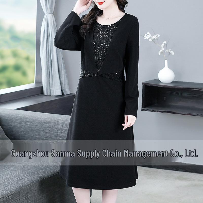 Весна 2025 Ретро Вышитое Платье с Длинным Рукавом Большого Размера, Стройнящее для Женщин Среднего Возраста