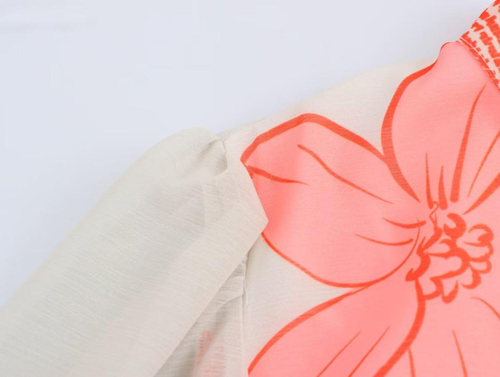 Весна 2025 Женское платье в европейском и американском стиле с V-образным вырезом и завязкой на талии с принтом