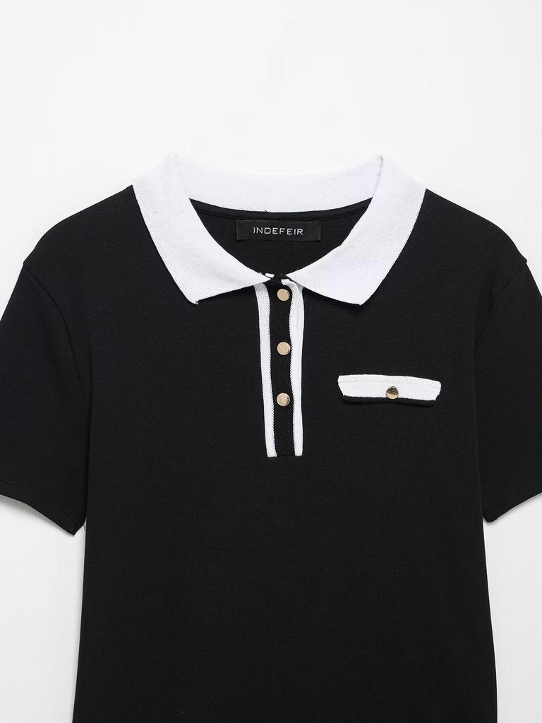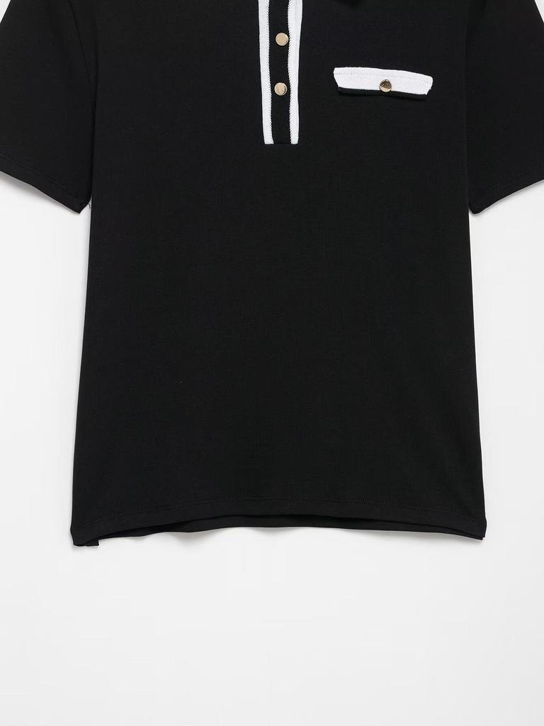 TAOP&ZA Женская трикотажная футболка с коротким рукавом и воротником поло на весну/лето