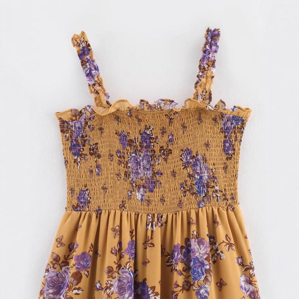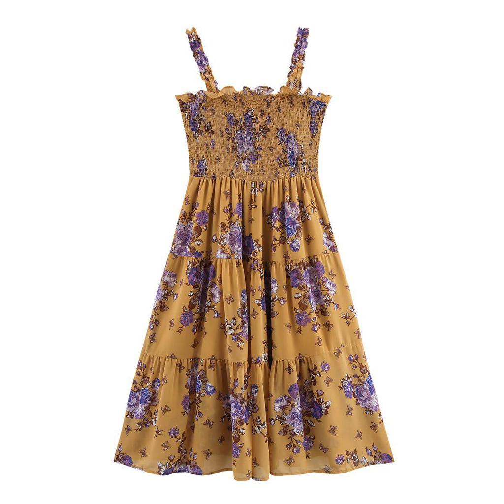 Весна 2025 Европейский и Американский Стиль Женское Шифоновое Платье-Слинг с Принтом и Сборкой на Талии
