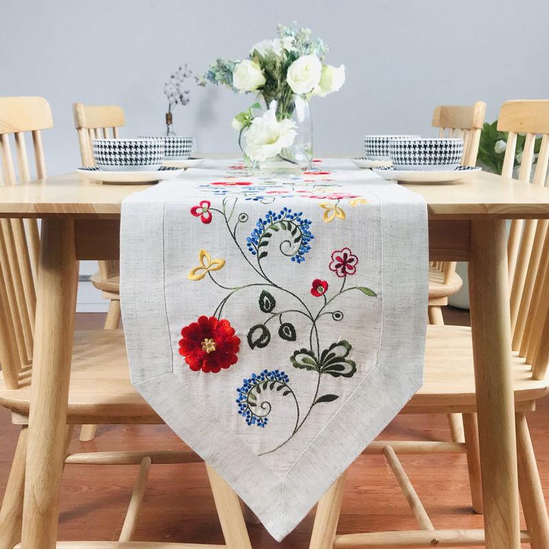 Вышивка Гостиная Домашняя Скатерть для чайного столика Обеденный стол Обычно используемая Носовой платок Прямоугольный Острый угол, Длинный Флажок для стола