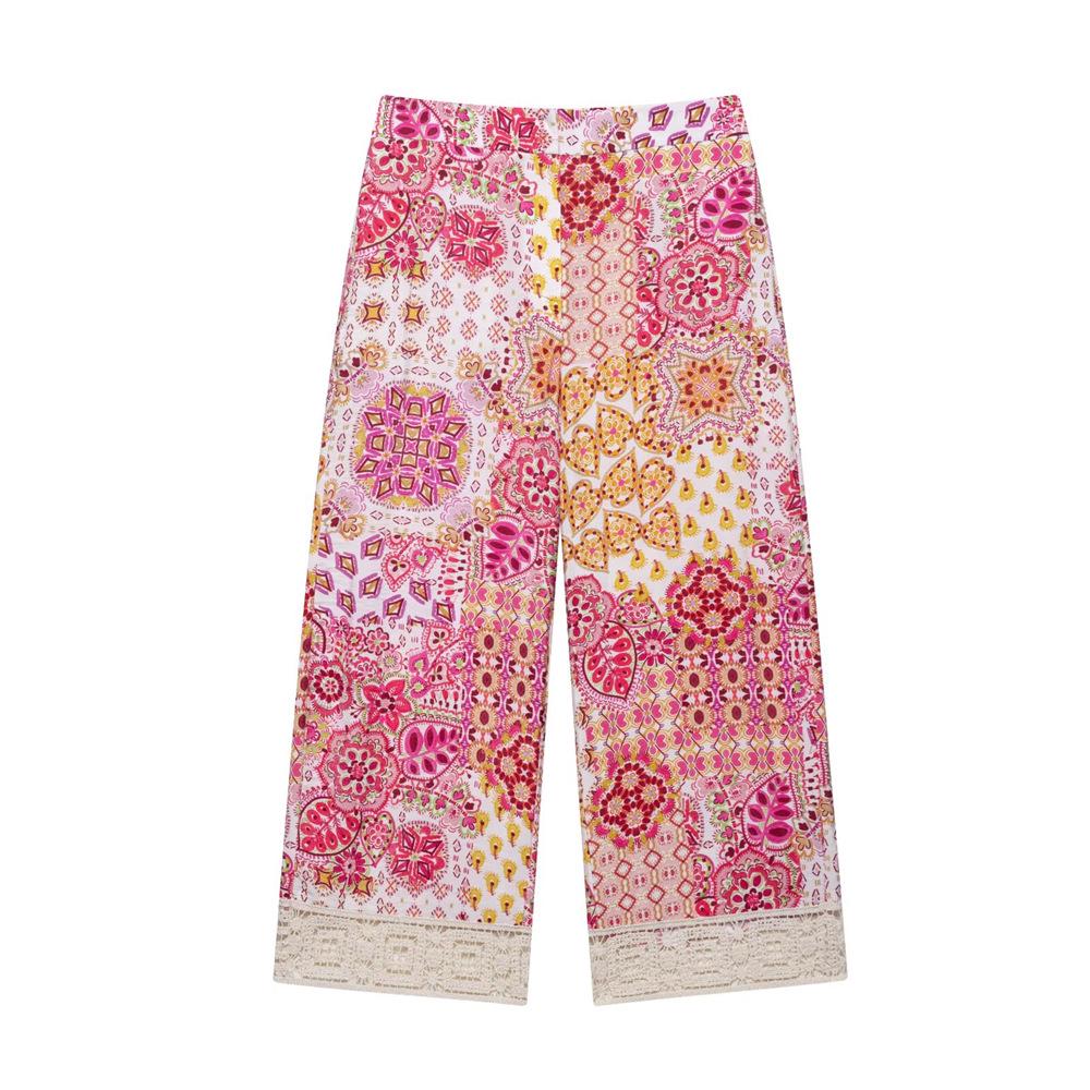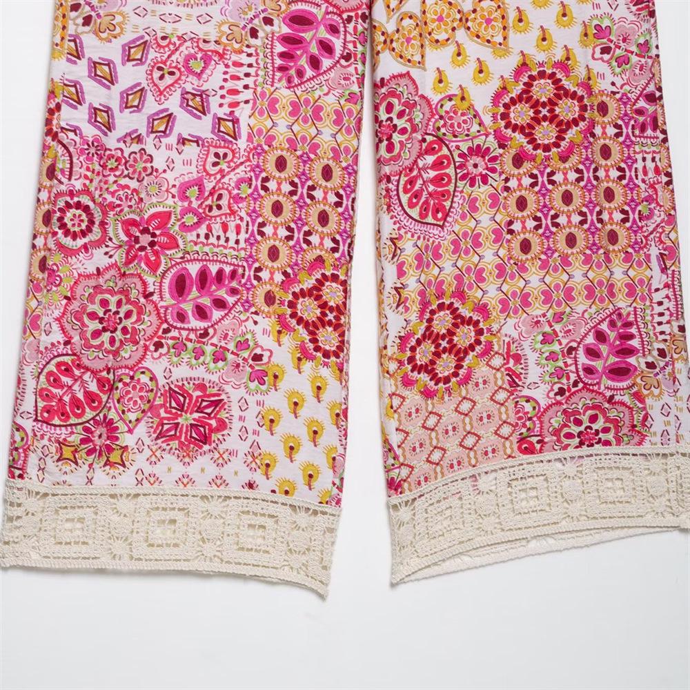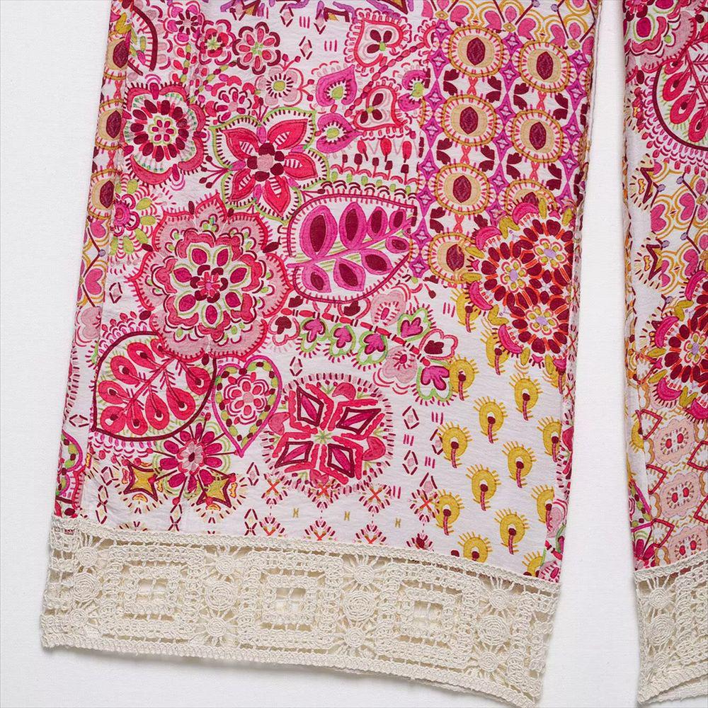 Оцените непринужденный стиль с этим шикарным женским комплектом, включающим рубашку с текстурными кружевными манжетами в сочетании с брюками с высокой посадкой.. Изготовленный из высококачественного полиэстера, этот комплект обеспечивает комфорт и долговечность.. Повседневный стиль идеально подходит для различных случаев, а деликатный принт добавляет вашему образу нотку элегантности.. Идеально подходит для весенне-летнего сезона 2025 года, этот комплект органично сочетает моду с практичностью.