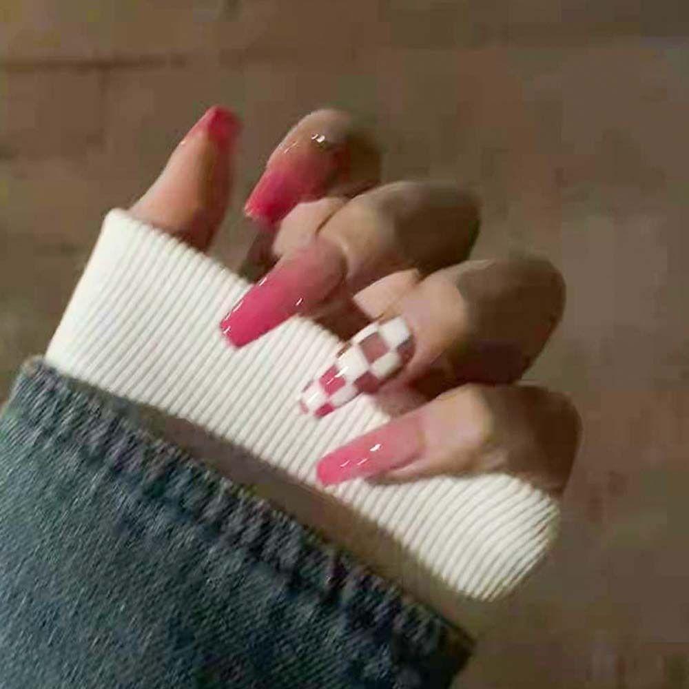 Nail Art Tips Checkerboard Fake Nails Blush Fake Nails Full Cover False Nails Nail Decorations