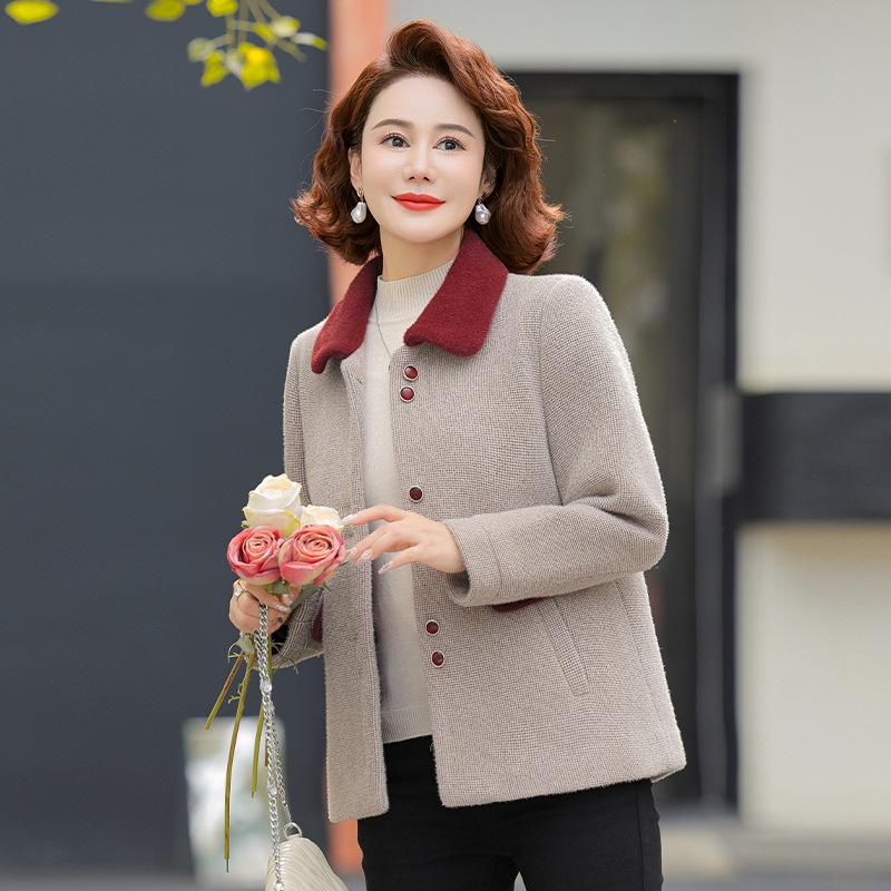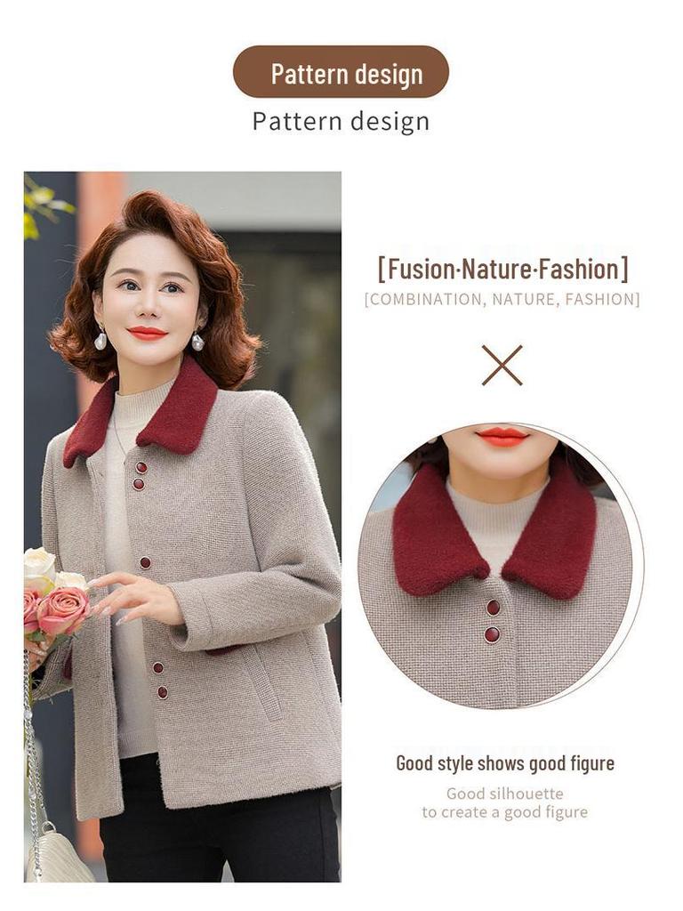 Стеганое шерстяное пальто мамы: Маленький искусственный норковый бархат для осенне-зимней одежды женщин среднего и пожилого возраста