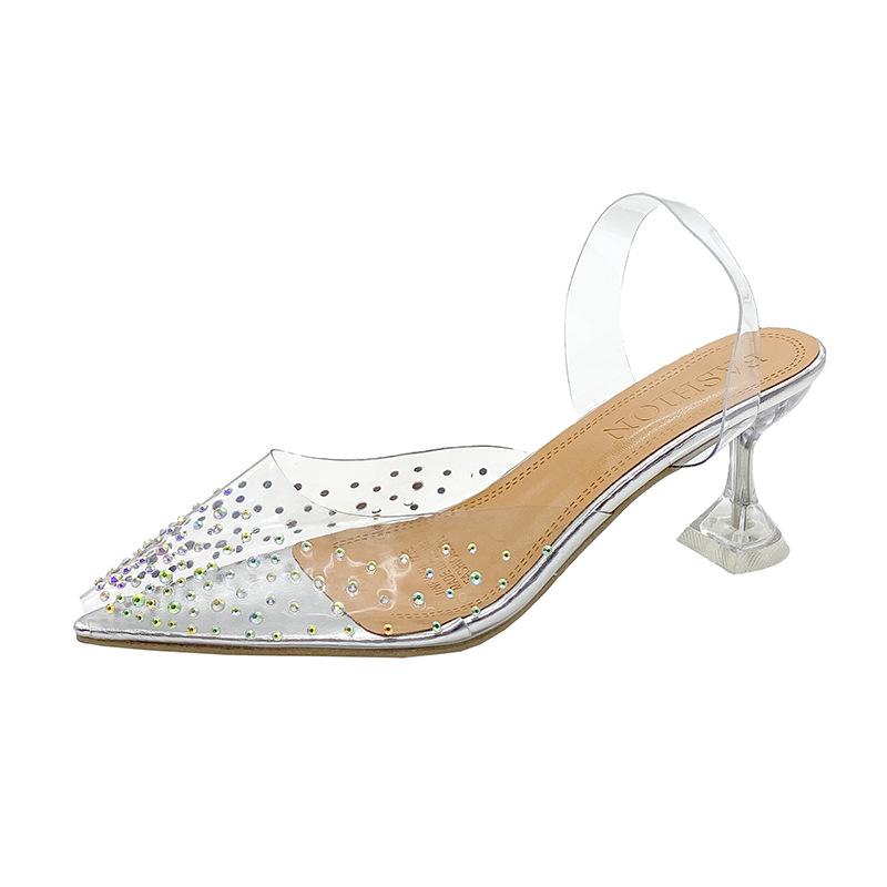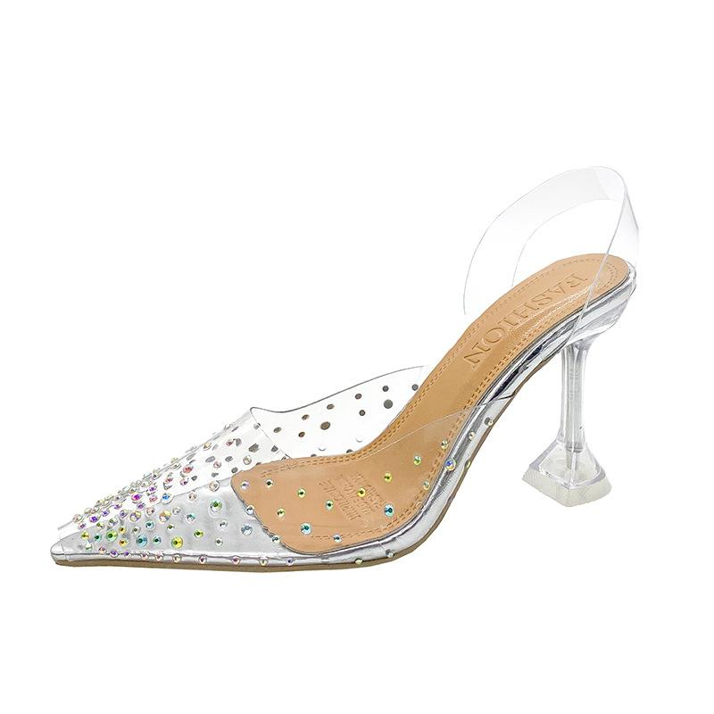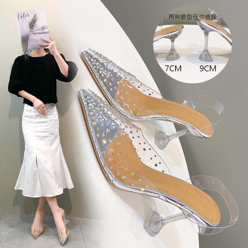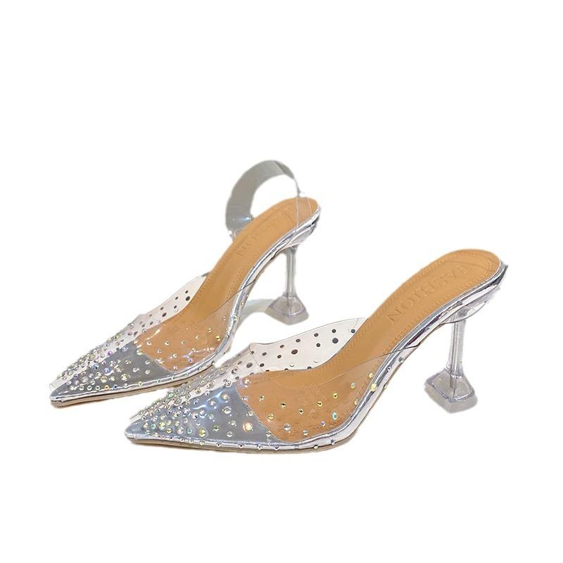 2023 лето новые женские корейская версия острый носок стразы бокал и босоножки на высоком каблуке женская мода прозрачные хрустальные туфли