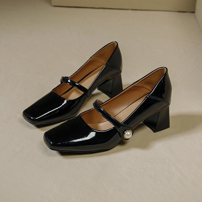 Туфли Мэри Джейн на толстом каблуке с квадратной головкой и высоким каблуком, новинка 2025 года, женские туфли на липучке, красные одинарные туфли на среднем каблуке