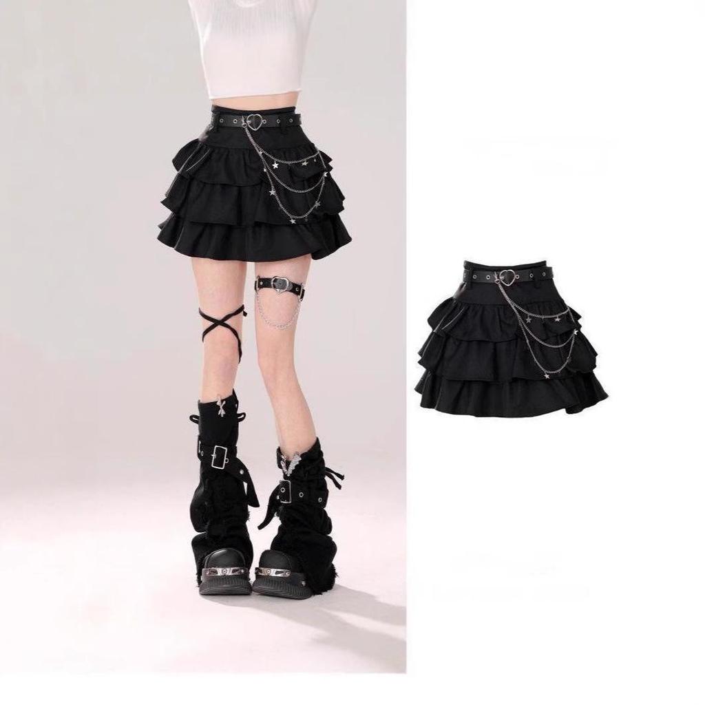 Юбка-пачка Y2K черного цвета с поясом-сердечком и джинсовыми гетрами для женщин - Острая, милая и крутая осенняя мини-юбка с высокой талией
