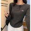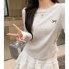 Женский топ с круглым вырезом, вышивкой бантом, длинными рукавами и плиссировкой, ранняя осень