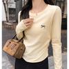 Женский топ с круглым вырезом, вышивкой бантом, длинными рукавами и плиссировкой, ранняя осень — купить товар онлайн с бесплатной доставкой по всему миру!