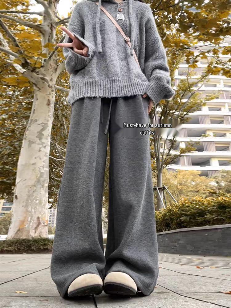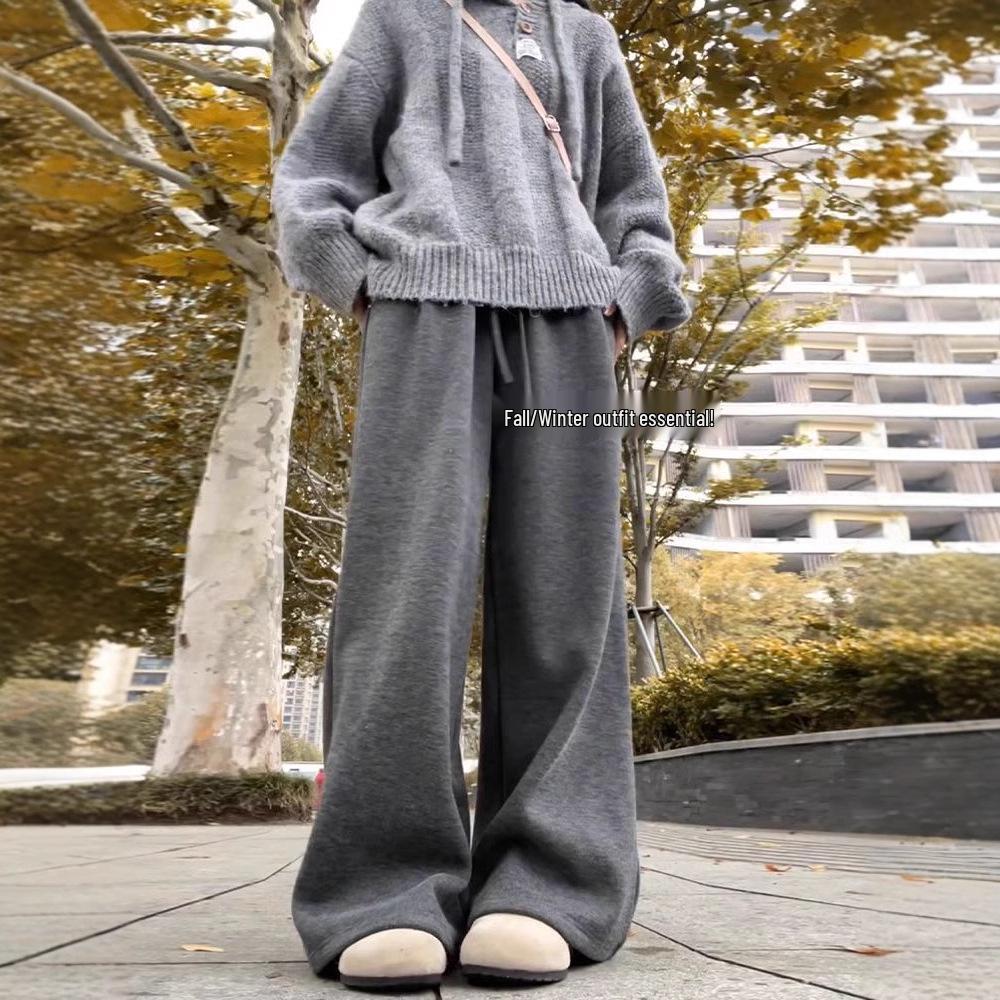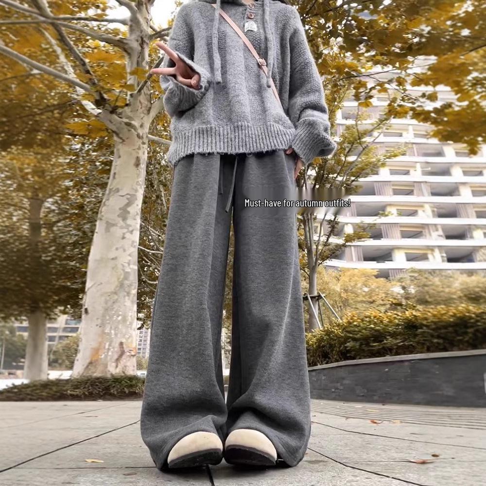 Женские брюки с флисовой подкладкой, с высокой посадкой, широкими штанинами, мягкие, вязаные, длиной до пола, свободного кроя для осени/зимы.