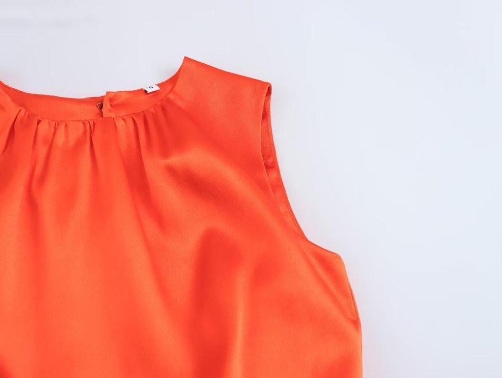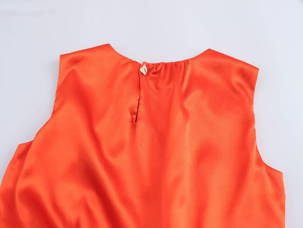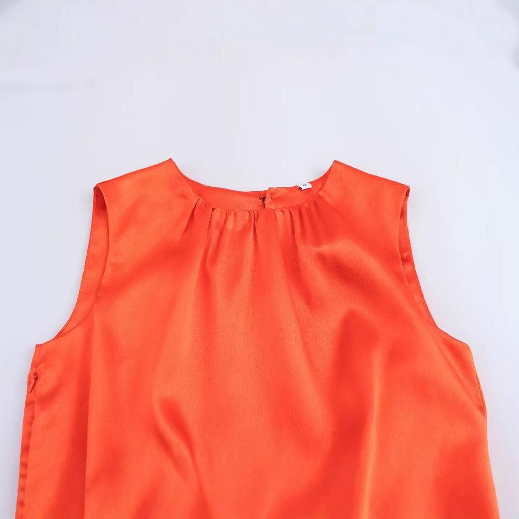 Весна 2025 Женское плиссированное миди-платье в европейском и американском стиле из атласа с декоративной пряжкой