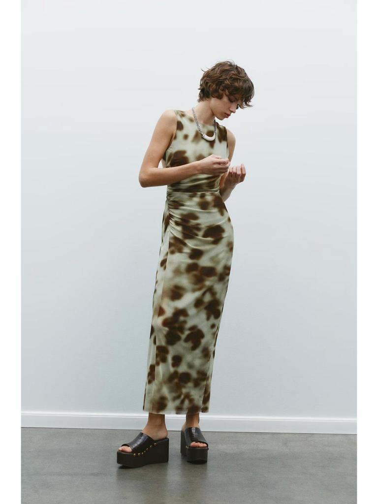 Это элегантное миди-платье без рукавов сочетает в себе европейские и американские модные тенденции, что делает его идеальным дополнением к любому весеннему гардеробу.. Платье, изготовленное полностью из высококачественного полиэстера, отличается красивым плиссированным дизайном и пленительным принтом, который добавляет нотку изысканности.. Его легкий материал обеспечивает удобную посадку, что делает его идеальным как для повседневных прогулок, так и для особых случаев.. Встречайте сезон стильно с этим универсальным и шикарным изделием.
