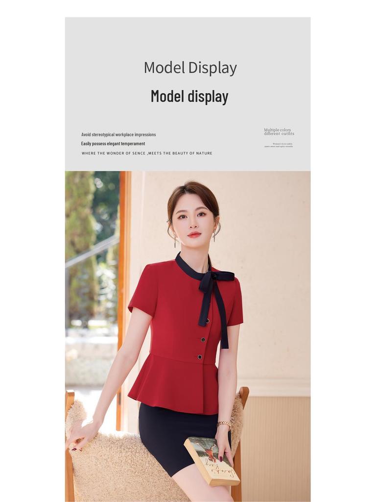 Откройте для себя идеальное сочетание стиля и комфорта с этим женским летним профессиональным брючным костюмом, разработанным специально для администраторов и косметологов.. Эта рабочая униформа с коротким рукавом предлагает изысканный и современный вид, идеально подходящий для поддержания профессионального внешнего вида в теплую погоду.. Изготовленный из высококачественного полиэстера, этот комплект обеспечивает долговечность и простоту в уходе, а также легкую, дышащую посадку для комфорта в течение всего дня.. Шикарный дизайн идеально подходит для дополнения вашего рабочего гардероба, позволяя вам представлять себя с уверенностью и элегантностью.