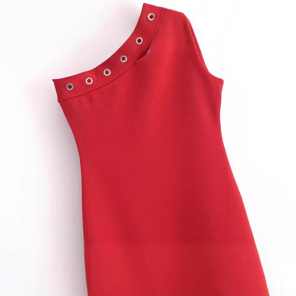 2025 Spring Women's European & American Style Slim-Fit Asymmetrical Metal Embellished Dress