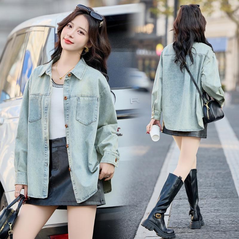 Женская джинсовая куртка свободного кроя на весну 2025 года - Повседневная модель с длинными рукавами в корейском стиле Y2509