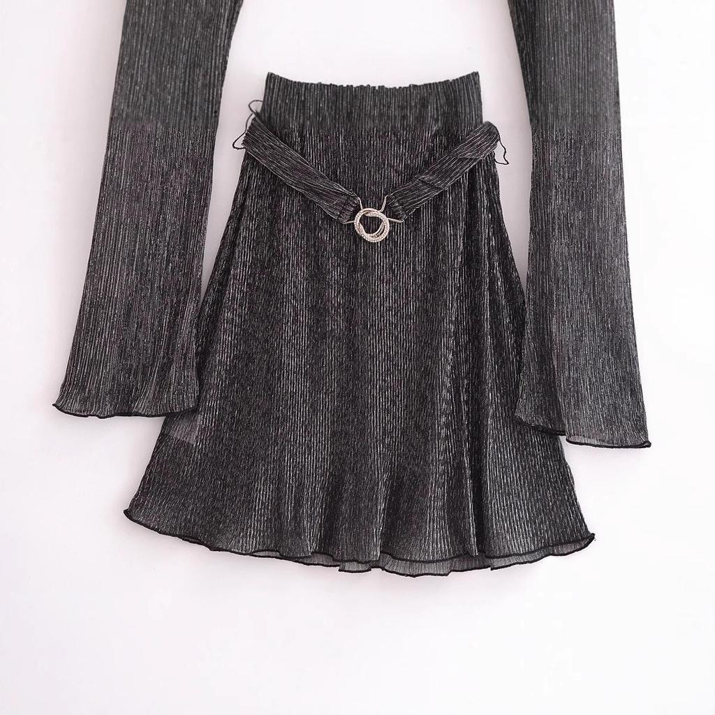 Весна 2025 Женское повседневное плиссированное платье в европейском и американском стиле с простым круглым вырезом