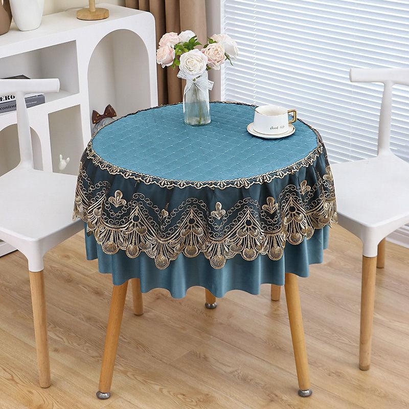 Круглая Тканевая Скатерть для Чайного Столика Кружевной Голландский Бархат Домашняя Накидка Утолщенная Скатерть для Обеденного Стола Гостиная Противоскользящая Скатерть