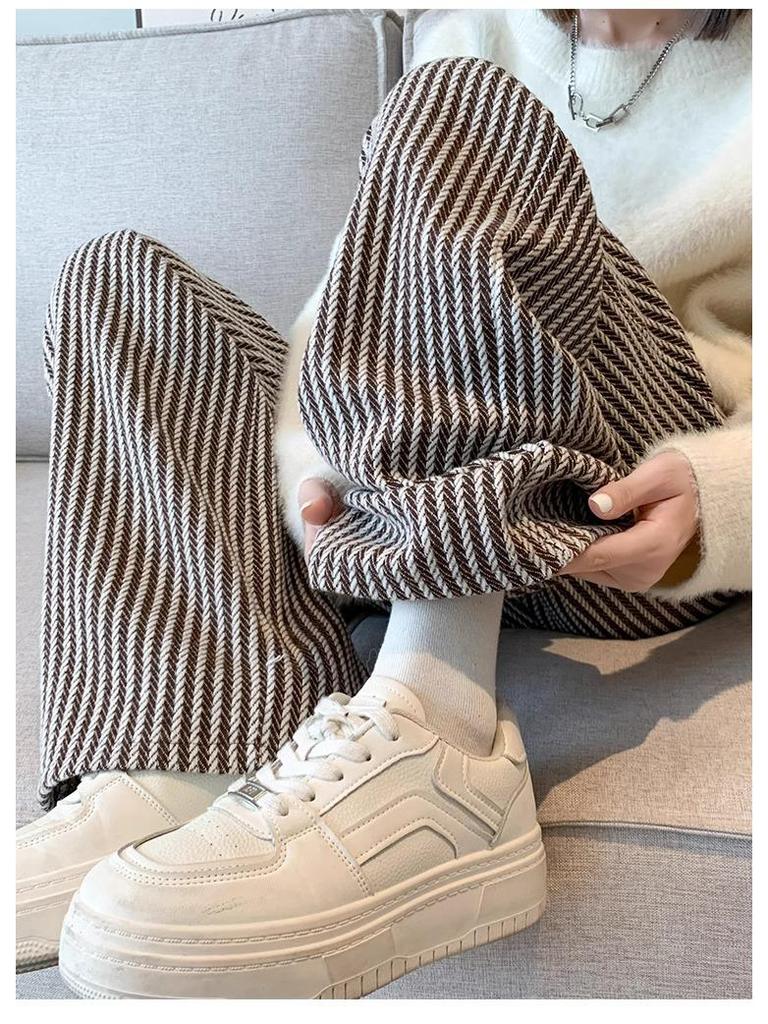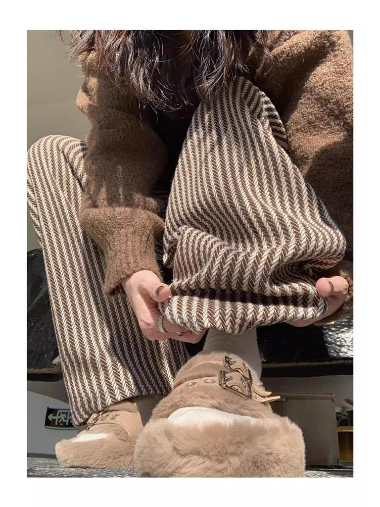 Откройте для себя идеальное сочетание комфорта и стиля с этими шерстяными брюками с высокой посадкой и широкими штанинами в тонкую полоску, разработанными специально для миниатюрных женщин.. Идеальные для осени и зимы, они отличаются изысканным коричневым оттенком, который дополнит любой гардероб.. Изготовленные из высококачественного полиэстера, эти брюки отличаются спортивным корейским стилем, который обеспечивает как тепло, так и шикарную эстетику.. Собираетесь ли вы на прогулку или предпочитаете повседневный стиль, эти брюки добавят универсальности и элегантности вашему сезонному гардеробу.
