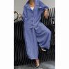 Женский комплект Весенний женский повседневный костюм с топом с длинными рукавами + широкие брюки Набор из 2 предметов Полосатые брюки с отложным воротником Большой размер