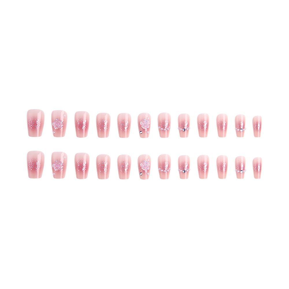 24pcs Medium Length Gentle Fake Nail Detachable Press on Nails Fashion French Style Nails Girl