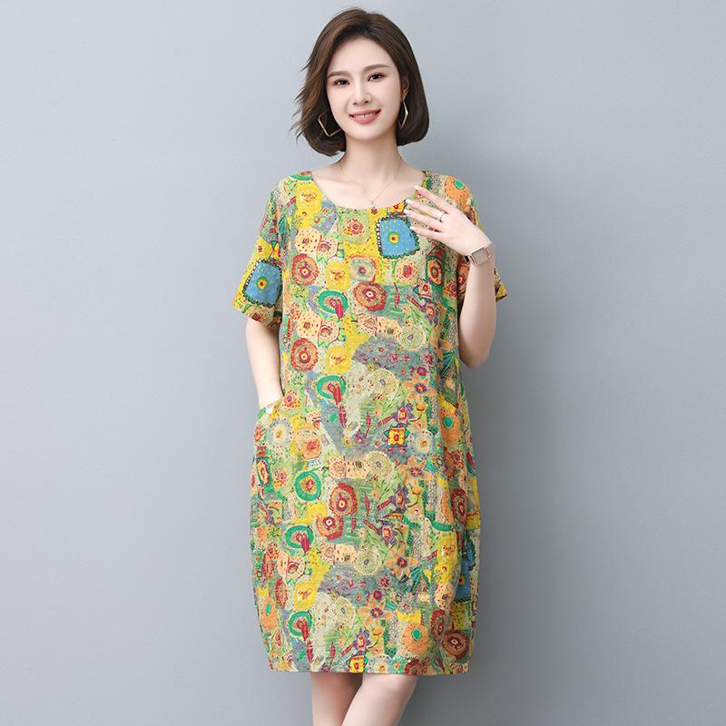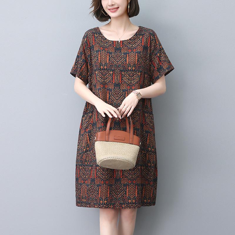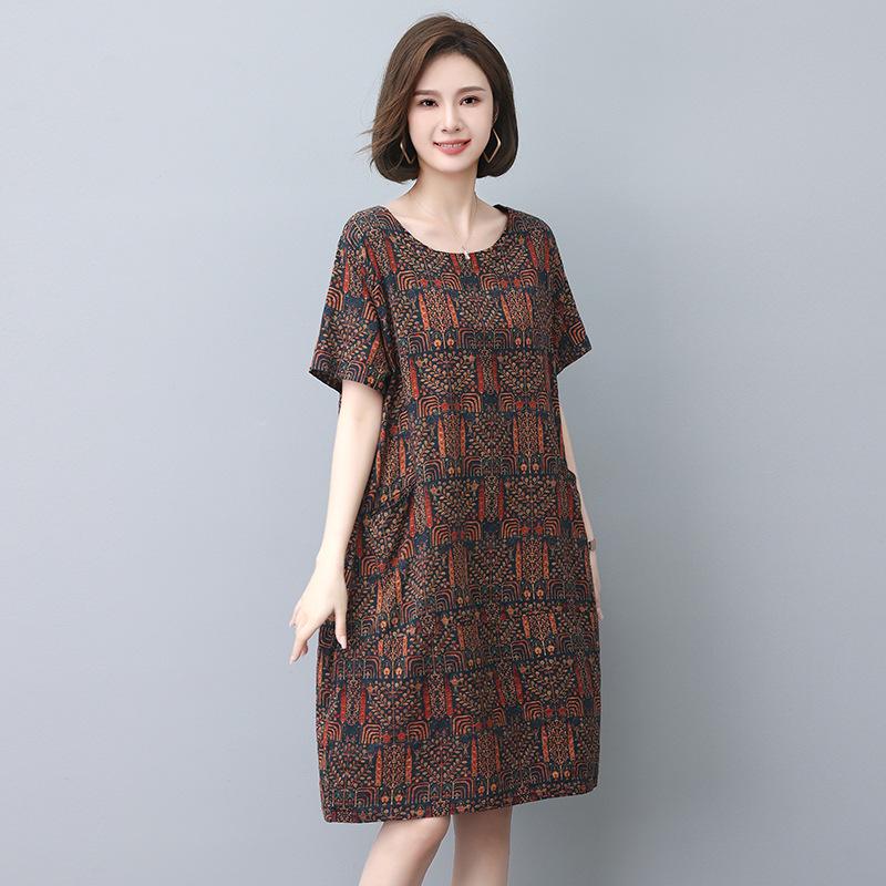 Представляем стильное и удобное платье, разработанное специально для женщин среднего и пожилого возраста.. Этот свободного кроя предмет одежды изготовлен из смеси хлопка и льна, что обеспечивает дышащий и легкий вариант, идеально подходящий для теплых месяцев.. Ретро-принт добавляет нотку ностальгии и очарования, делая его универсальным дополнением к любому гардеробу.. Идеальное для повседневных выходов, это платье сочетает в себе элегантность и непринужденность, обеспечивая и стиль, и комфорт.