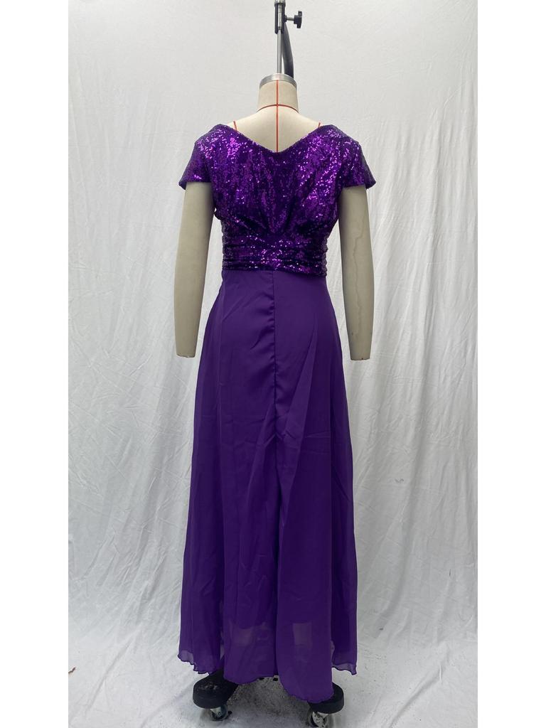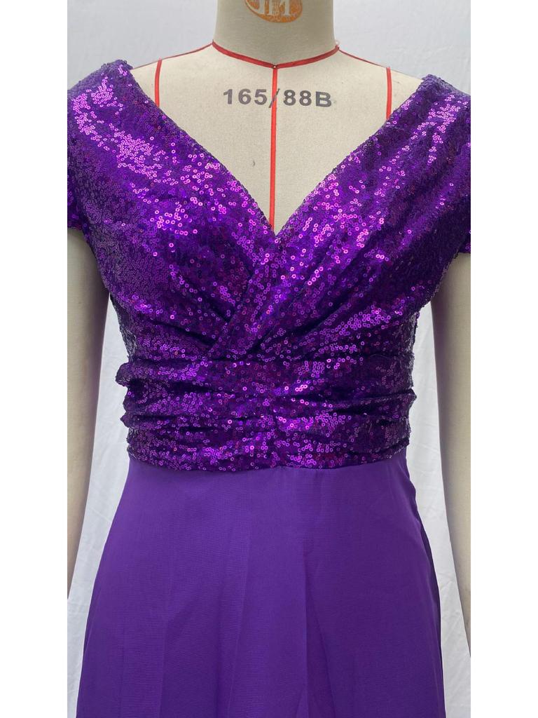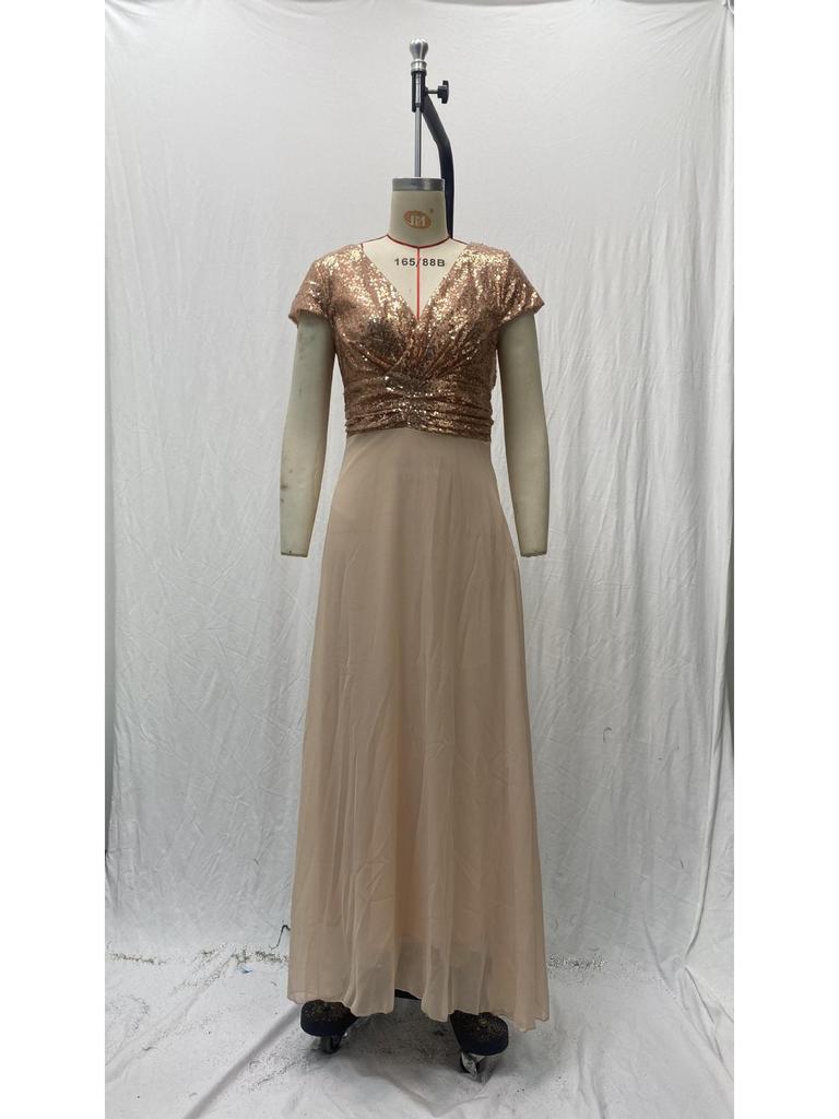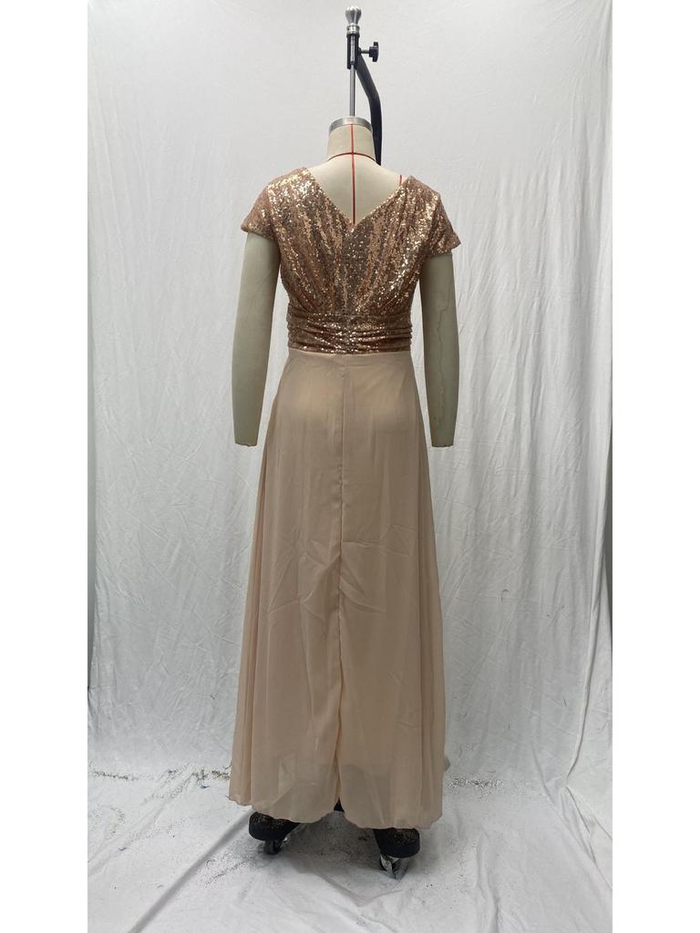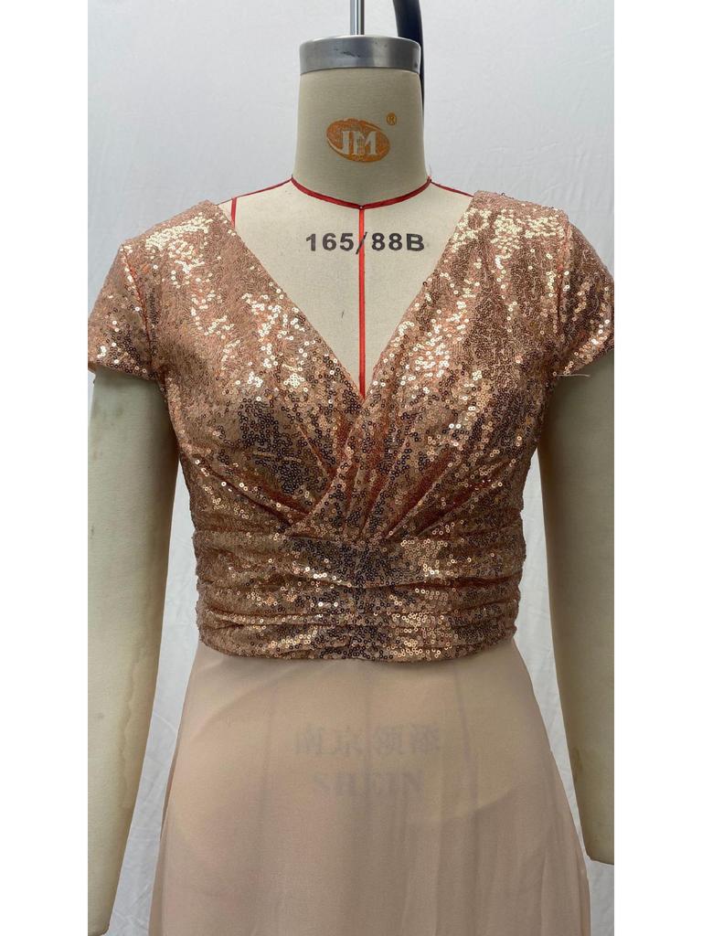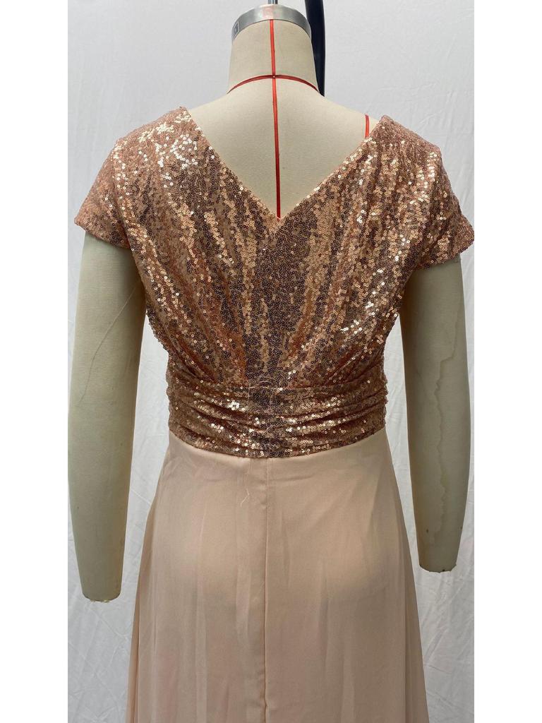 Элегантное платье без рукавов из шифона с пайетками и V-образным вырезом для весны/лета 2025