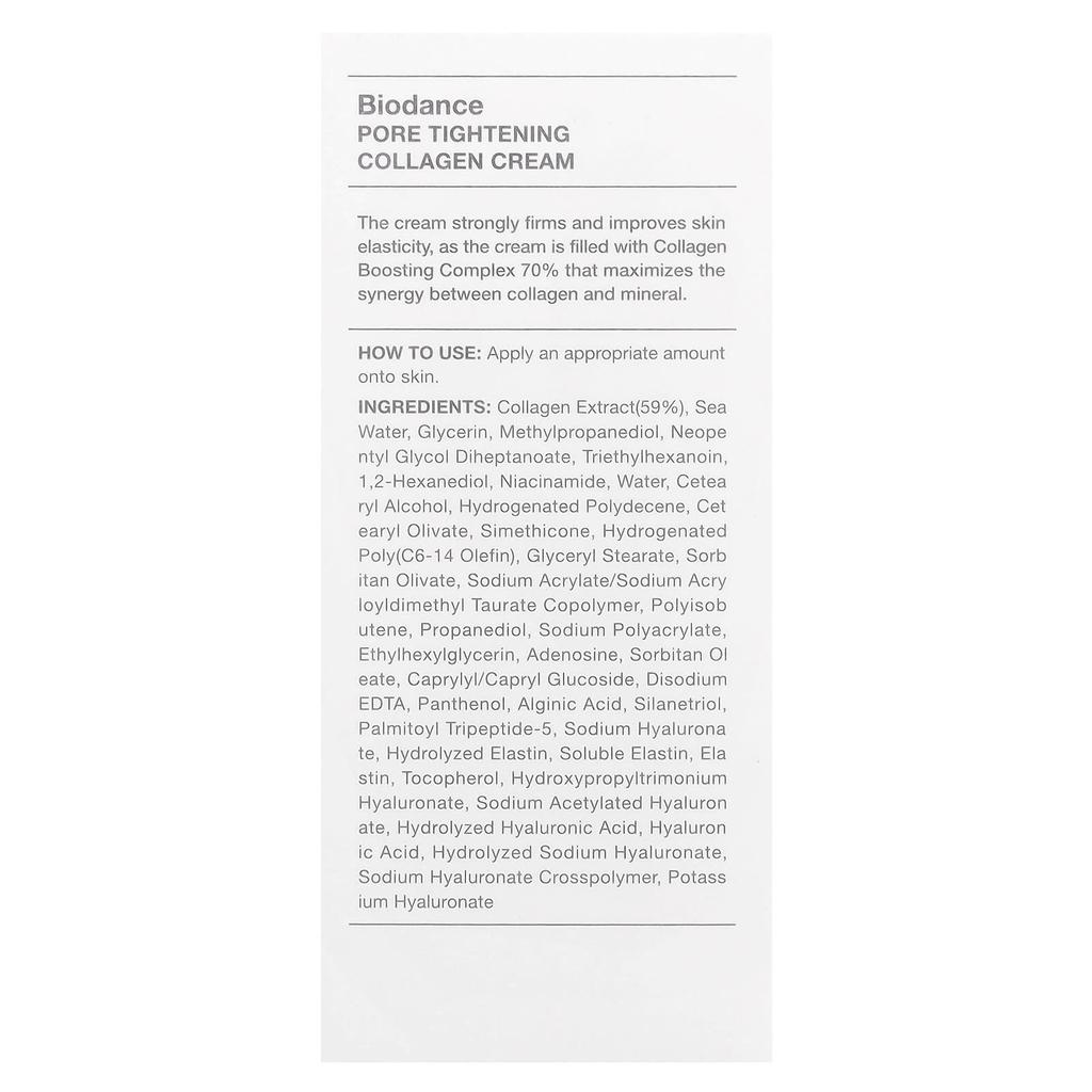 collagen extract (59%), seawater, glycerin, methylpropanediol, neopentylglycol diheptanoate, triethylhexanoin, 1,2-hexanediol, niacinamide, purified water, cetearyl alcohol, hydrogenated polydecene, cetearyl olivate, simethicone, hydrogenated poly(c6-14 olefin), glyceryl stearate, sorbitan olivate, sodium acrylate/sodium acryloyldimethyl taurate copolymer, polyisobutene, propanediol, sodium polyacrylate, ethylhexylglycerin, adenosine, sorbitan oleate, caprylyl/capryl glucoside, disodium edta, panthenol, arginic acid, silanetriol, palmitoyl tripeptide-5, sodium hyaluronate, hydrolyzed elastin, water-soluble elastin, elastin, tocopherol, hydroxypropyltrimonium hyaluronate, sodium acetylated hyaluronate, hydrolyzed hyaluronic acid, hyaluronic acid, hydrolyzed sodium hyaluronate, sodium hyaluronate crosspolymer, potassium hyaluronate.