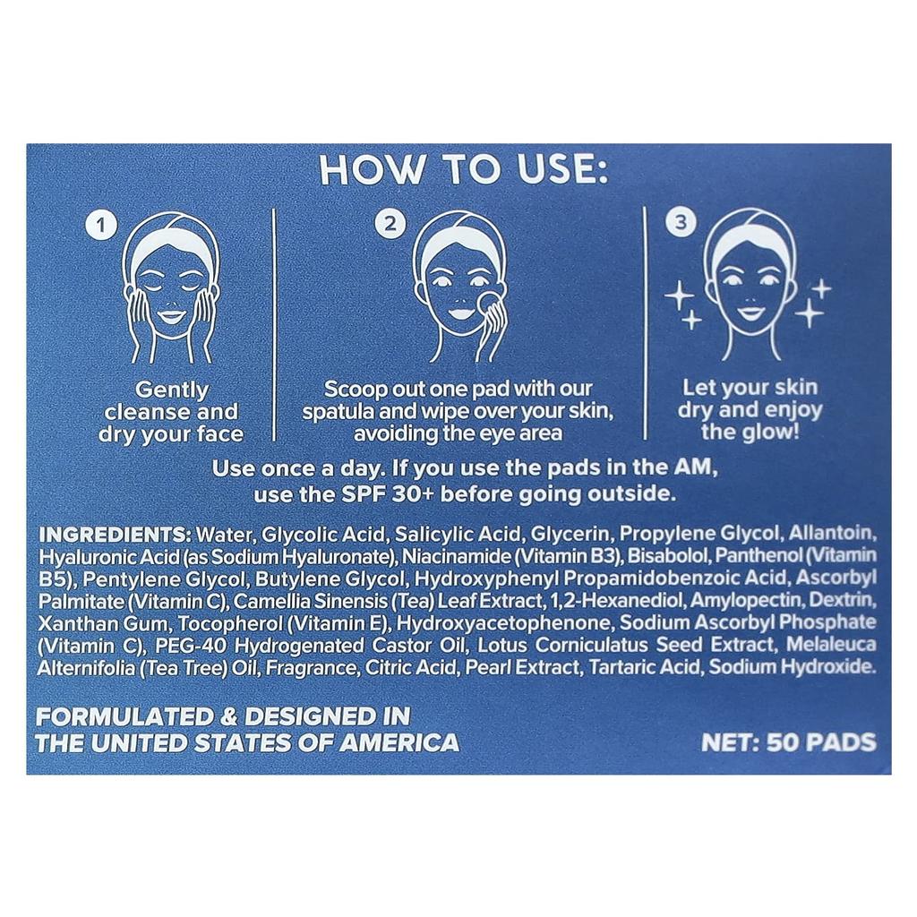 Описание товара: Коллагеновый бустер 20% Обновляющий комплекс Антивозрастной и разглаживающий Гиалуроновая кислота Ниацинамид Масло чайного дерева Профессиональная формула Мгновенное сияние кожи Гликолевая кислота и гиалуроновая кислота Суперфуд Витаминный комплекс От морщин, пигментных пятен и тусклости Натуральные принципы ухода за кожей Гликолевые диски Без сульфатов Без силиконов Без ГМО Без глютена Без минерального масла Без фталатов Без формальдегида Без красителей Простая в использовании магнитная лопатка Ежедневное мягкое обновляющее средство Гликолевая кислота отшелушивает, разглаживая мелкие морщины, морщины, дефекты и акне. Гиалуроновая кислота глубоко увлажняет и способствует обновлению кожи для максимального антивозрастного эффекта. Витамины B3, B5, E Питает, смягчает и придает сияние коже, улучшая ее текстуру и внешний вид. Как использовать: Нежно умойте лицо и высушите его. Поднимите одну сторону диска лопаткой и протрите кожу, избегая области вокруг глаз.. Высушите кожу и почувствуйте ее сияние.. Используйте один раз в день. Наносите SPF 30+ утром перед выходом на улицу. Ингредиенты: Вода, Гликолевая кислота, Салициловая кислота, Глицерин, Пропиленгликоль, Аллантоин, Гиалуроновая кислота (Гиалуронат натрия), Никотинамид (Витамин В3), Бисаболол, Пантенол (Витамин B5), Пентиленгликоль, Бутиленгликоль, Гидроксифенилпропамидобензойная кислота, Аскорбилпальмитат (Витамин С), Чайный куст (Зеленый чай) Экстракт листьев, 1,2-гександиол, амилопектин, декстрин, ксантановая камедь, токоферол (Витамин Е), Гидроксиацетофенон, Натрия Аскорбил Фосфат (Витамин С), ПЭГ-40 Гидрогенизированное касторовое масло, Lotus Corniculatus (Лядвенец рогатый) Экстракт семян, Чайное дерево (Мелалеука Альтнифолия) Масло, Отдушка, Лимонная кислота, Экстракт жемчуга, винная кислота, гидроксид натрия.
