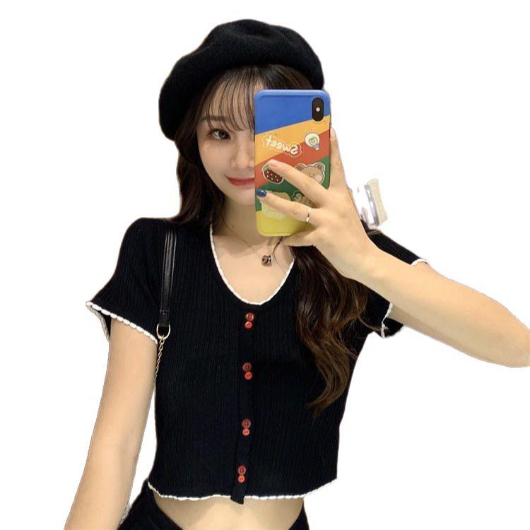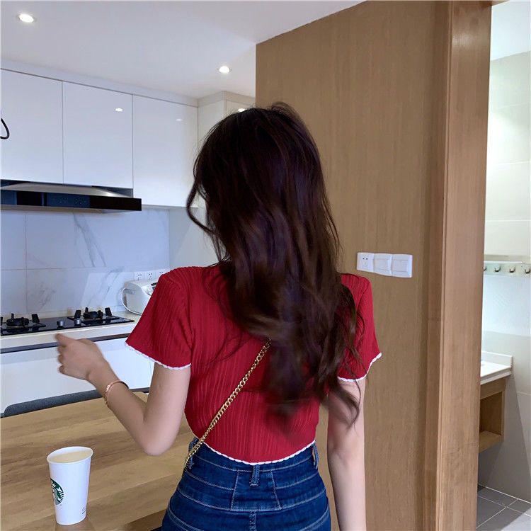 Женский вязаный топ из ледяного шелка с V-образным вырезом, приталенного силуэта 2025 - летний, с коротким рукавом, с завышенной талией