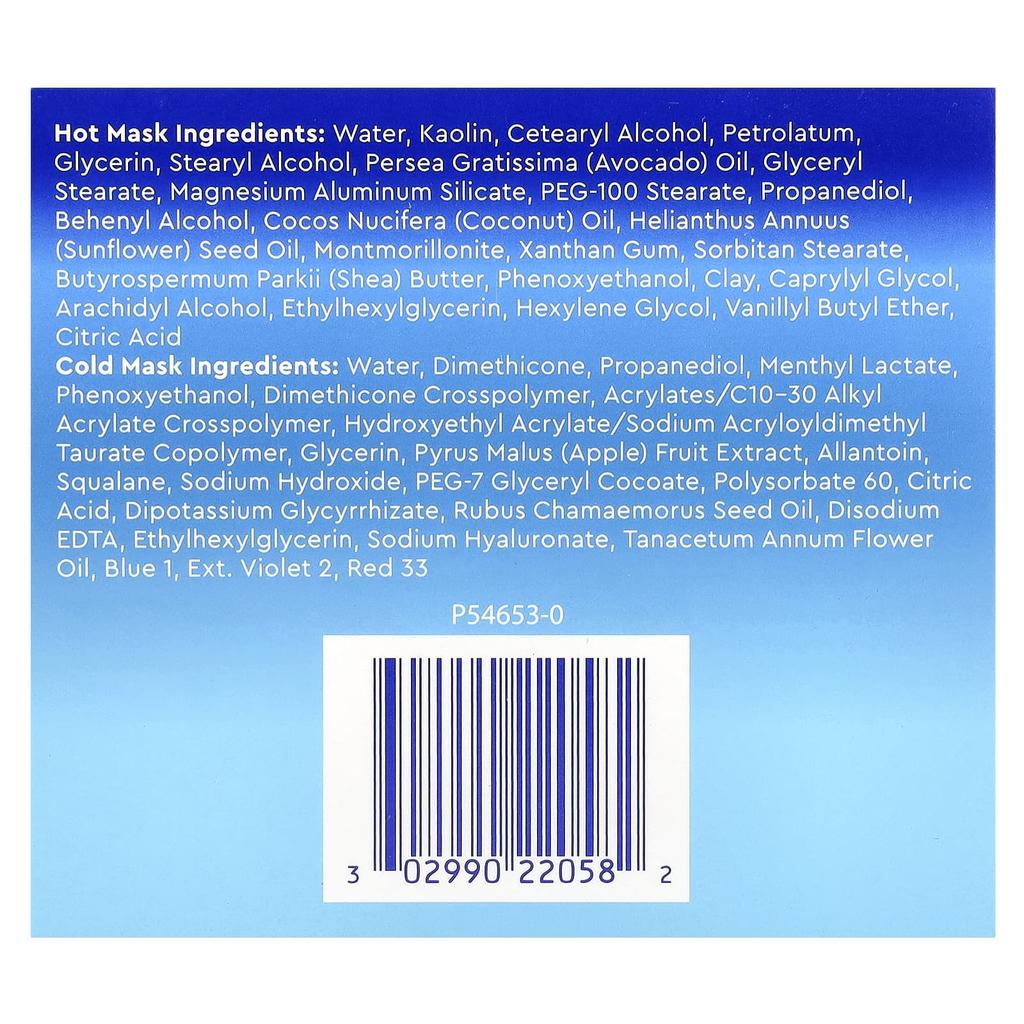 Как использовать: Выдавите продукт, используя прилагаемый двусторонний шпатель.. Шаг 1: После умывания нанесите на влажную кожу согревающую смываемую глину.. Оставьте на 3 минуты, чтобы детоксицирующий поры эффект начал действовать.. Промыть холодной водой. Шаг 2: Нанесите тонкий слой охлаждающего несмываемого геля на все лицо. Не смывать. Используйте 2-3 раза в неделю. Маски разработаны для совместного использования и не должны использоваться по отдельности, а только в соответствии с инструкциями.. Вы можете использовать Успокаивающую маску для лечения Detox Plus вместе с гелем Differin в вашем уходе за кожей.. При использовании по назначению, его может хватить на 2-3 месяца. Тест на чувствительность для начинающих пользователей: После умывания лица нанесите небольшое количество на один или два влажных участка кожи.. Смыть холодной водой через 30 секунд. Если вы не испытываете никакого дискомфорта, используйте согласно инструкции.. ингредиенты: Горячие ингредиенты маски: очищенная вода, каолин, цетеариловый спирт, вазелин, глицерин, стеариловый спирт, авокадо (Persea gratissima) масло, глицерил стеарат, магния алюмосиликат, ПЭГ-100 стеарат, пропандиол, бегениловый спирт, кокосовое (Кокос орехоцветный) масло подсолнечное (Подсолнечник однолетний) масло семян, монтмориллонит, ксантановая камедь, стеарат сорбитана, ши (Butyrospermum parkii) масло, феноксиэтанол, глина, каприлилгликоль, арахидиловый спирт, этилгексилглицерин, гексиленгликоль, ванилилбутиловый эфир, лимонная кислота. Ингредиенты для холодной маски: очищенная вода, диметикон, пропандиол, ментил лактат, феноксиэтанол, кроссполимер диметикона, акрилаты/C10-30 алкилакрилатный кроссполимер, сополимер гидроксиэтилакрилата/натрия акрилоилдиметилтаурата, глицерин, Pyrus Malus (яблоко) Экстракт фруктов, Аллантоин, Сквалан, Гидроксид натрия, ПЭГ-7 глицерил кокоат, Полисорбат 60, Лимонная кислота, Дикалия глицирризат, Rubus chamaemorus (клубника) Масло семян, Динатриевая соль ЭДТА, Этилгексилглицерин, Гиалуронат натрия, Пижма однолетняя (Пижма однолетняя) Цветочное масло, Синий №. 1, Ext. Фиолетовый Нет. 2, Красный Нет. 33