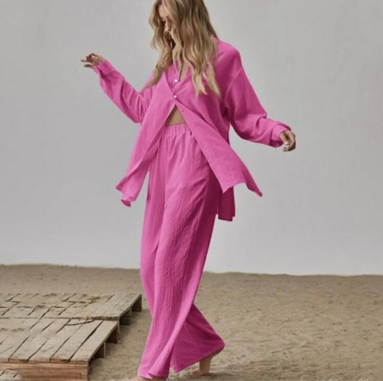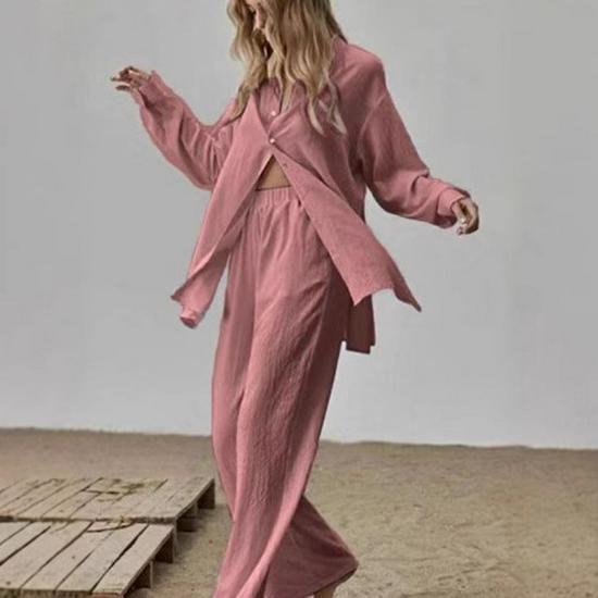Оцените сочетание винтажного шарма и современного комфорта с этим весенним комплектом 2025 года в стиле ретро плюс-сайз, состоящим из рубашки свободного кроя с высокой талией и длинных брюк для женщин.. Этот комплект с однотонным узором, выполненный в спортивном стиле, предлагает расслабленную посадку, которая идеально подходит для повседневных прогулок или неспешных занятий.. Рубашка и брюки оснащены удобными карманами, добавляющими практичный штрих к классическому дизайну.. Этот ансамбль легко сочетает в себе функциональность с вневременной модой, что делает его универсальным дополнением к любому гардеробу.