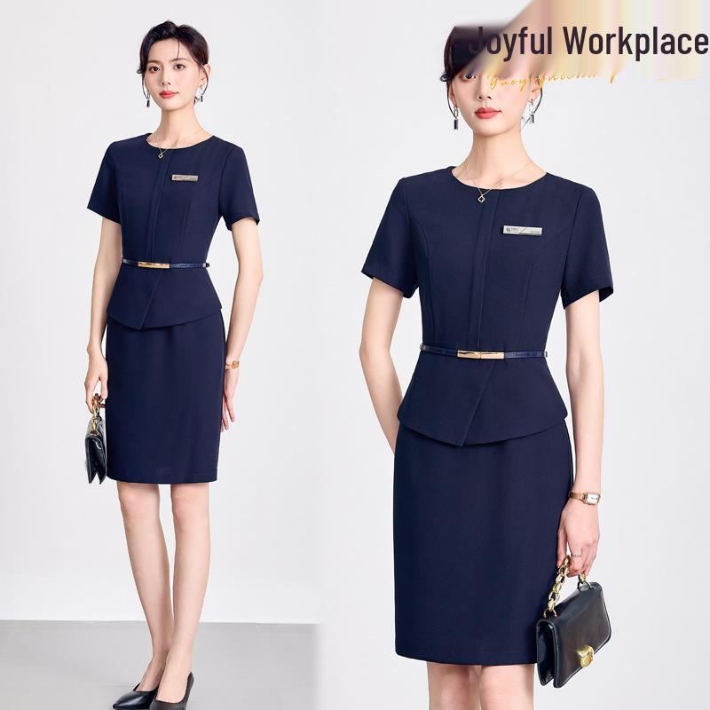 Темно-синее облегающее платье-двойка - Женская формальная одежда, рукав семь восьмых, круглый вырез — купить товар онлайн с бесплатной доставкой до всему миру!
