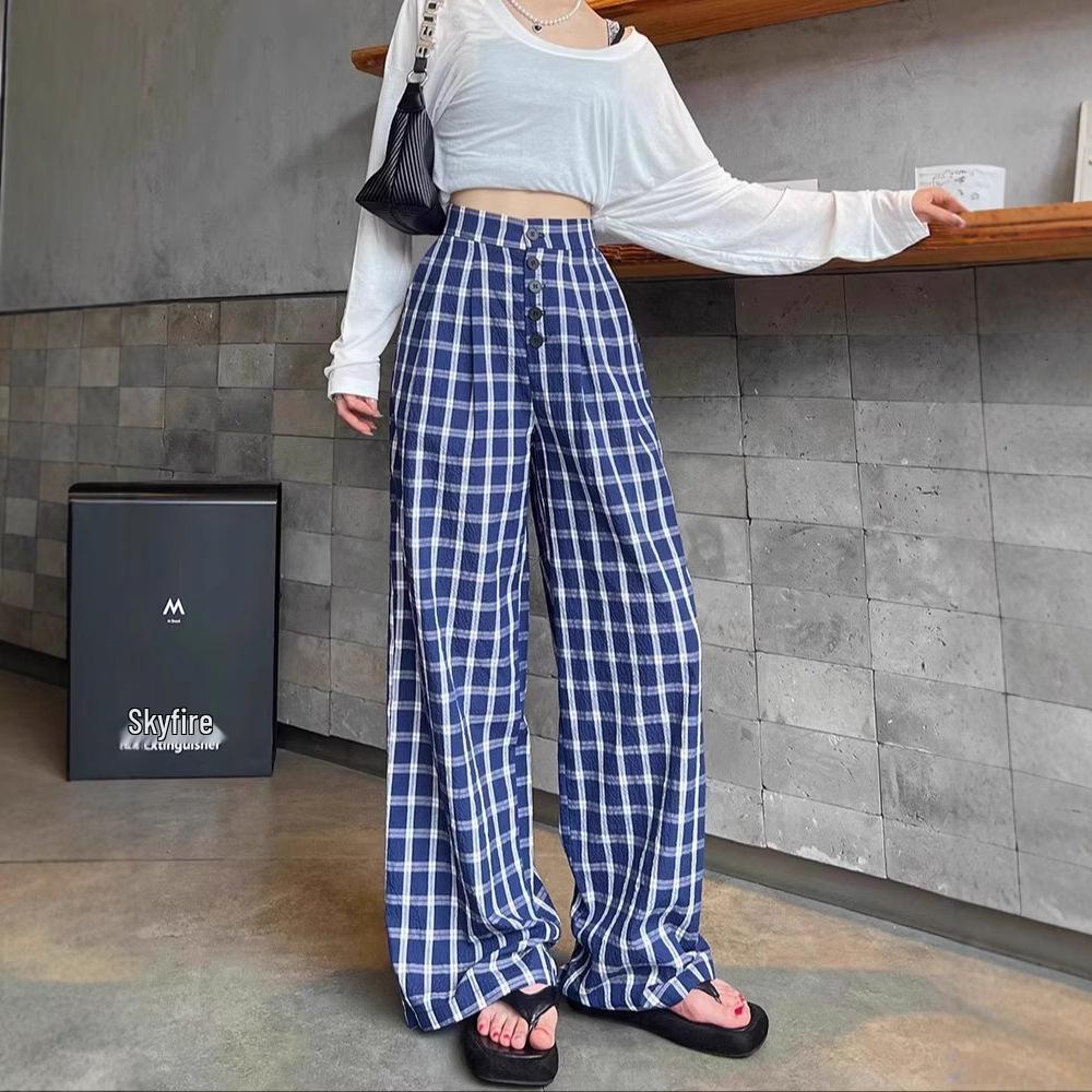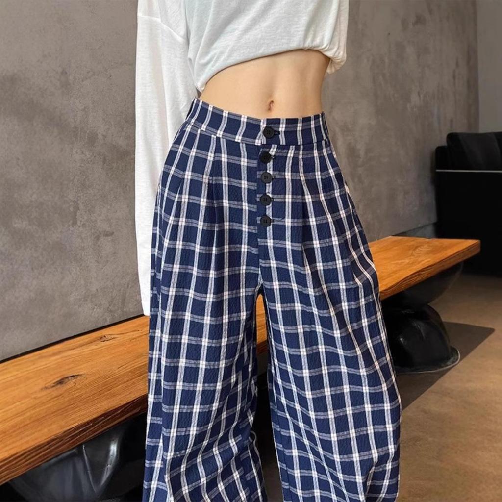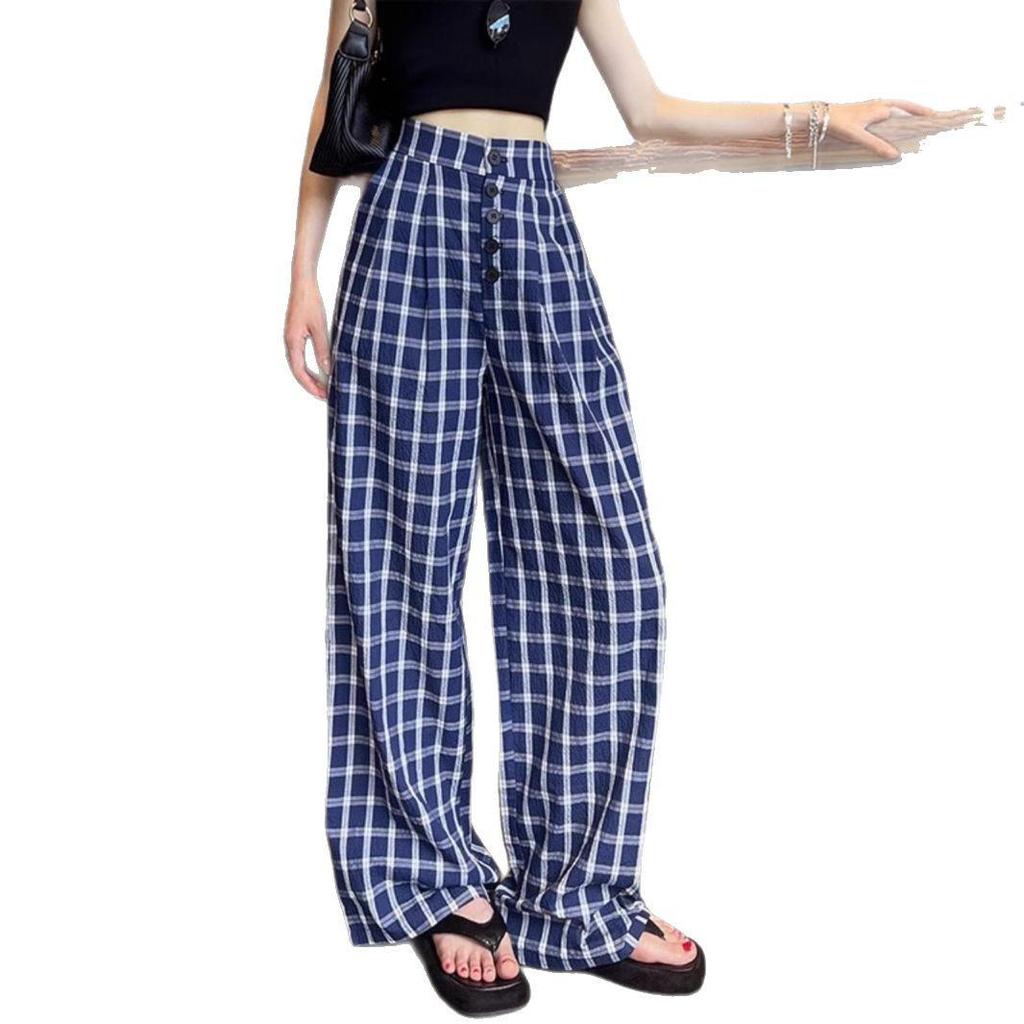 Эти женские синие брюки в клетку в стиле ретро с широкими штанинами и двубортной застежкой предлагают стильное сочетание спортивной и винтажной эстетики, идеально подходящее для весеннего и осеннего гардероба.. Эти брюки, изготовленные из высококачественного полиэстера, созданы для комфорта и долговечности.. Широкий крой обеспечивает расслабленную посадку, а двубортная застежка добавляет нотку изысканности.. Идеальные для различных случаев, эти брюки сочетают классические клетчатые узоры с современными модными тенденциями, что делает их универсальным дополнением к любой коллекции.