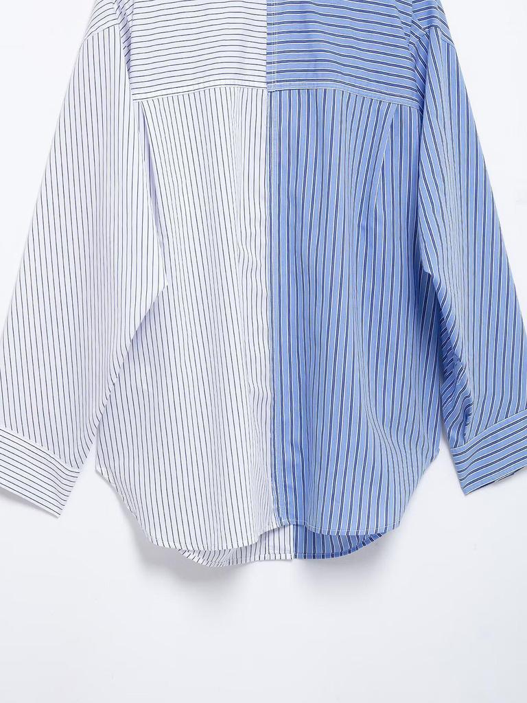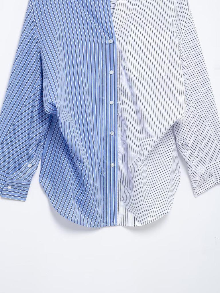 Женская мода весна 2025: Рубашка в полоску с длинным рукавом, однобортная