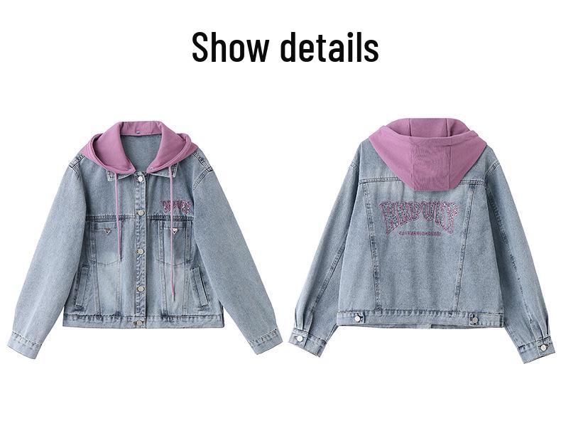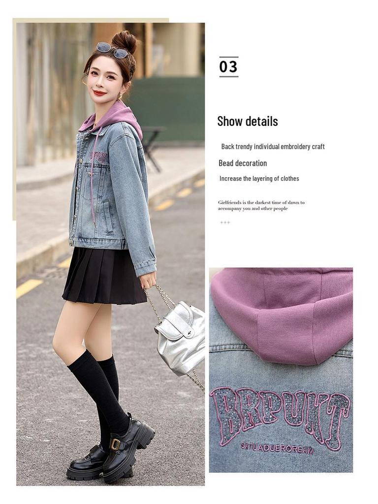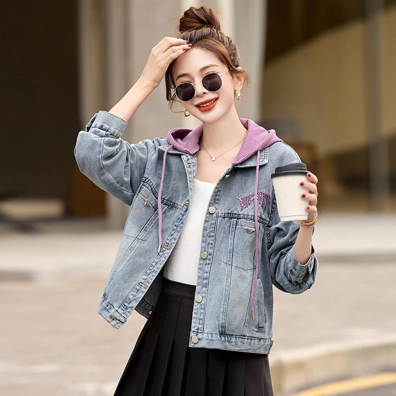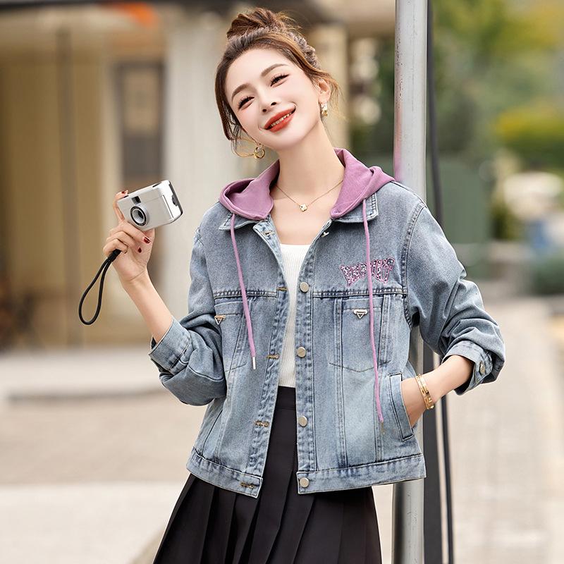 Женская джинсовая куртка на весну 2025 года с отстегивающимся капюшоном - Универсальная мода MZ130