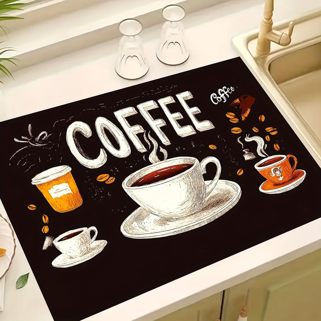 Резиновый коврик для сушки с ретро-посудой для кофе для кофейни, ресторана, кухни, ковер, посуда, прочный коврик для стола из диатомовой грязи, коврик для домашних животных, посуда для кофе