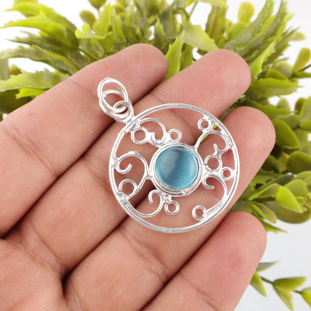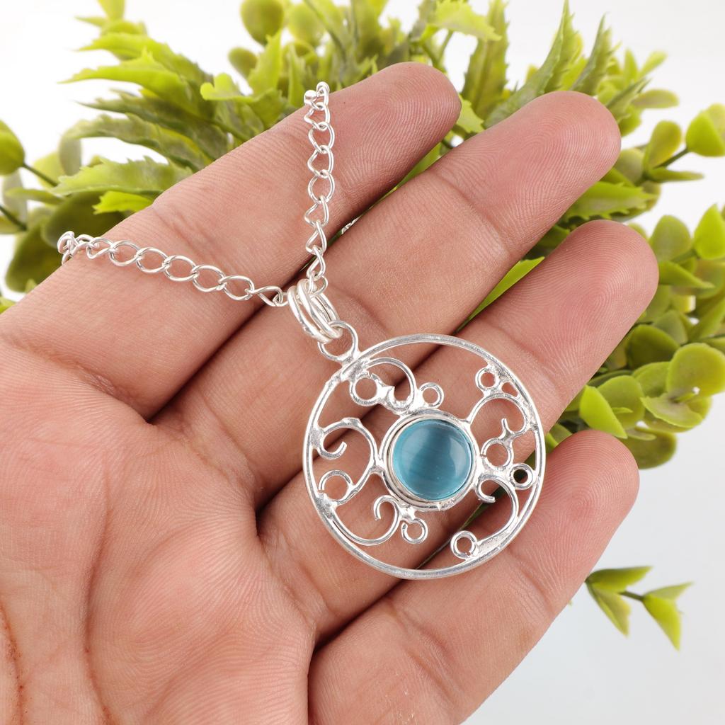 Кулон с камнем «кошачий глаз» синего цвета, ювелирное изделие из серебра 925 пробы, кулон ручной работы, балансирующее ювелирное украшение, подарок для женщин