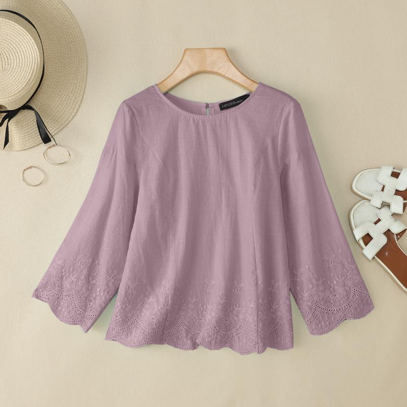 ZANZEA Женская повседневная блузка с круглым вырезом, рукавами 3/4, свободного кроя, с вышивкой — купить товар онлайн с бесплатной доставкой по всему миру!