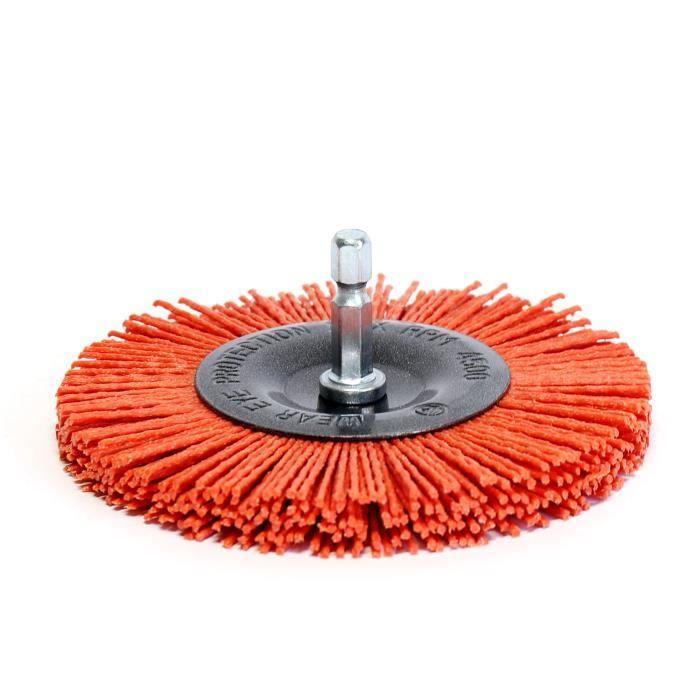 S&R Brosse Abrasive Circulaire 100 mm en Nylon AGRESSIF à queue hexagonal 1/4 '(6.35 mm) Qualité Professionnelle